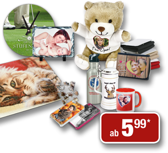 FOTOGESCHENKE Originelle Fotogeschenke selbst gestalten. Egal zu welchem Anlass: Geschenke mit Fotos kommen immer gut an, denn sie sind persönlich und individuell. Und das Gestalten ist ganz einfach: Produkt auswählen, online gestalten und schon wird aus Ihrem Foto eine originelle Geschenkidee. mehr...