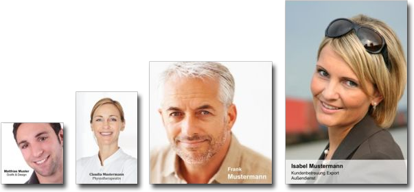 Für Mitarbeiter-Portraits empfehlen wir die Formate 10x10, 10x15, 13x13, 13x18, 20x20 und 20x30 cm.