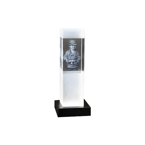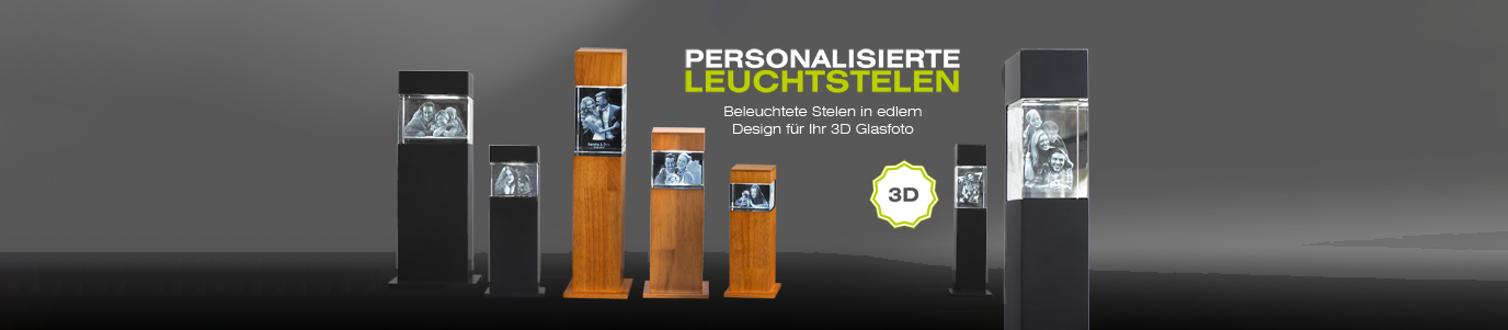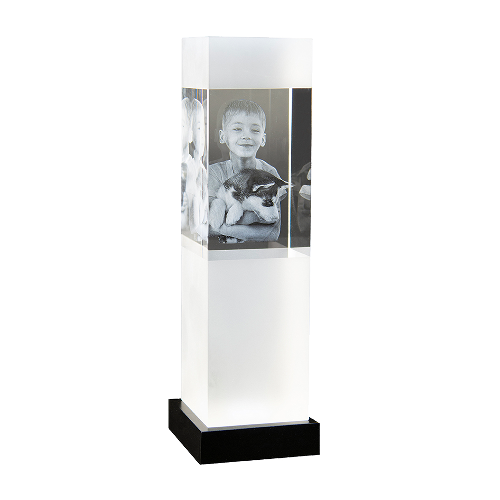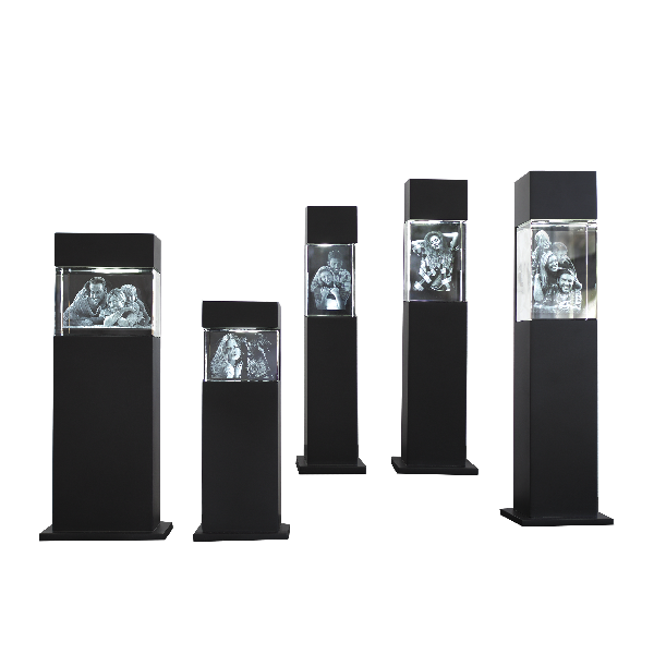 Dein 3D Glasfoto erstrahlt in Kombination mit der exklusiven schwarzen Leuchtstele in Eleganz und edler Schlichtheit und setzt als persönliches Wohnaccessoire Akzente.
