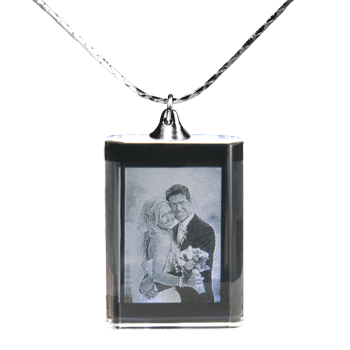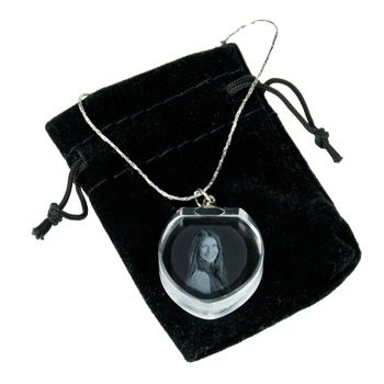 Ein besonderes Schmuckstück sind diese Anhänger mit 2D Laserinnengravur aus hochwertigem optischen Glas. Eine Kette mit ca. 40 cm Länge ist inklusive. Die Lieferung erfolgt in einem schwarzem Samtbeutel.
