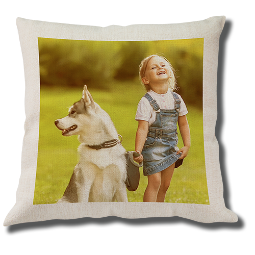 Das Fotokissen in Leinenoptik ist 40 x 40 cm groß, hat einen Reißverschluß und wird inkl. Füllung geliefert. Das Kissen ist waschbar bis 30° C