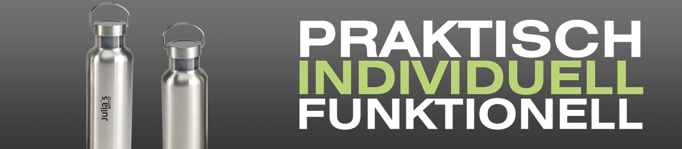 Die ToGo Bottles sind in 2 Größen erhältlich und auf einer Seite personalisierbar. Alternativ dazu gibt es sie bereits mit ansprechenden Motiven auf der Vorderseite. Die trendigen ToGo Trinkflaschen sind in 500 ml oder 750 ml erhältlich.